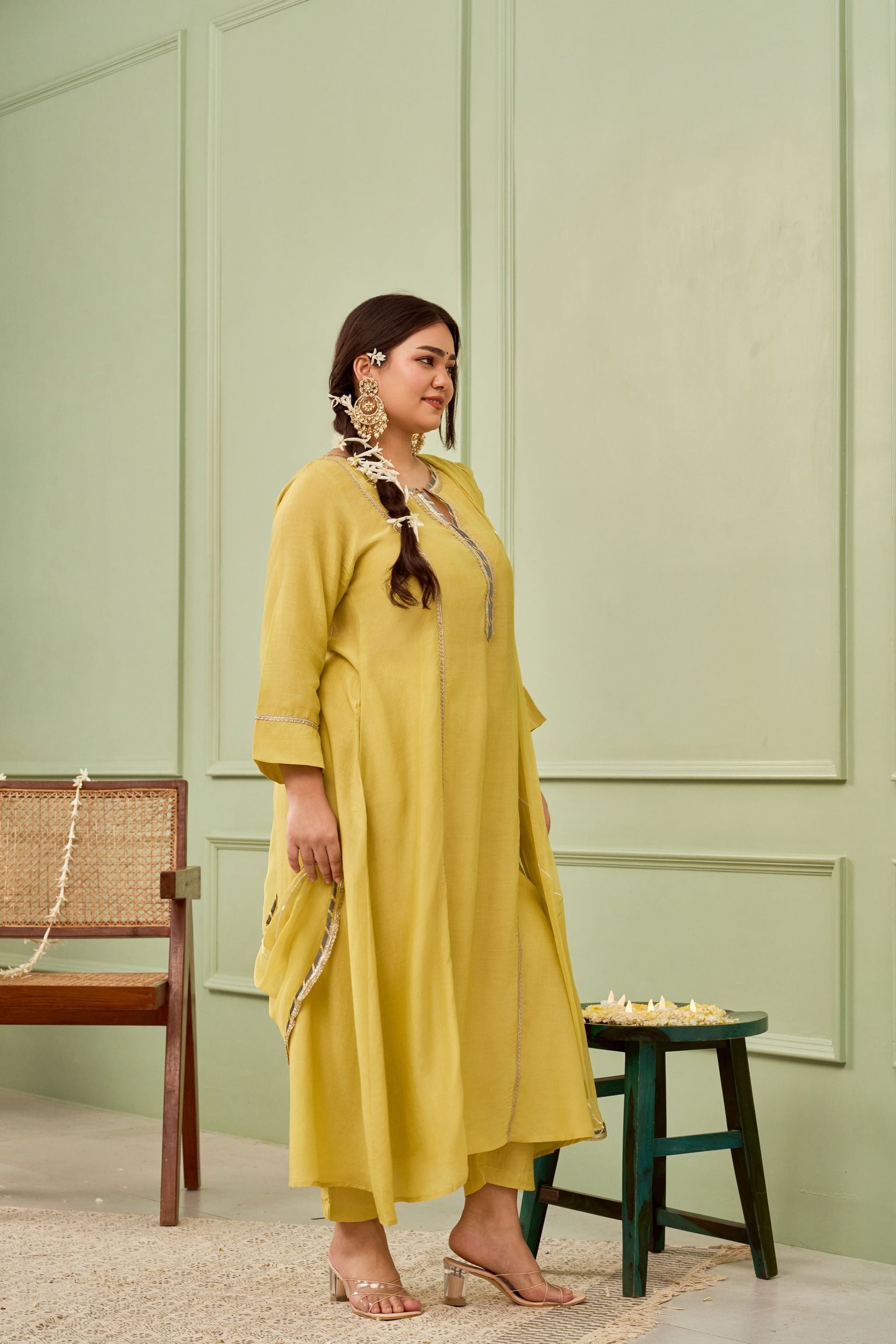 Mehendi Green Muslin 3 Kali Suit Set with Gota Details (Set of 3)