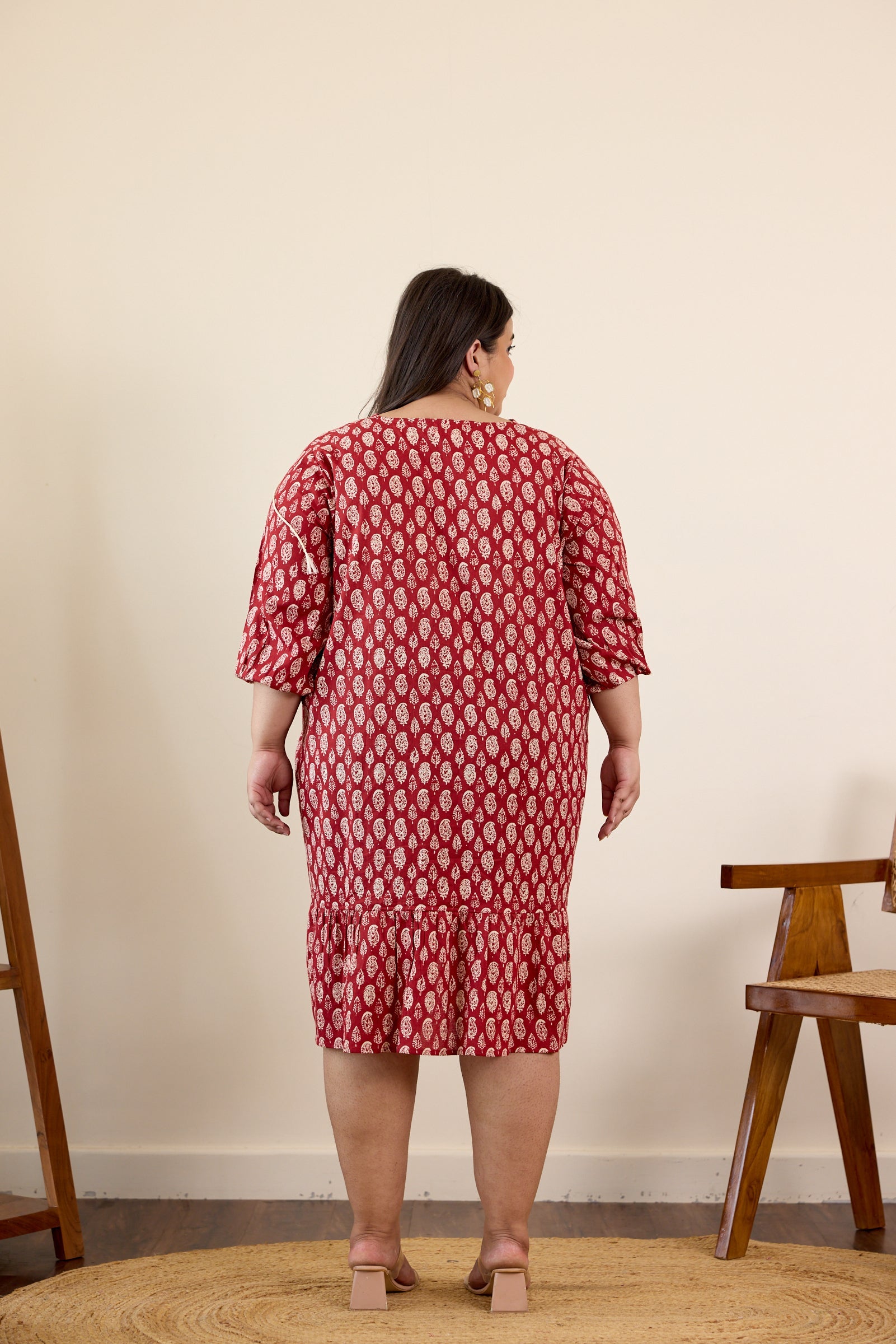 This red floral motif drop-waist dress blends traditional detailing with a modern, easy silhouette. Crafted from breathable 100% cotton, it features a flattering V-neckline accented with contrasting dori detail. The relaxed drop-waist cut adds comfort and flow, while the screen-printed floral motif brings a timeless, handcrafted feel.